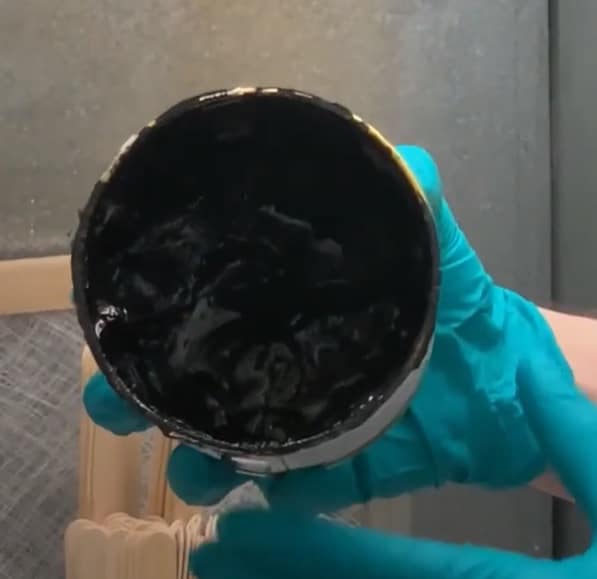 It is a good idea to start by putting on gloves to ensure your hands are not dirtied in the ink mixing process. From there – carefully open your can of pad printing ink and take a look inside. Can you see a layer of shiny transparent liquid on the top of your ink? This is the binder which has floated to the top of your ink can. If you see this- you need to re-mix your pad printing ink. Even if you cannot clearly see this layer of transparent shininess- it is a good idea to re-mix any can of stored pad printing ink prior to use